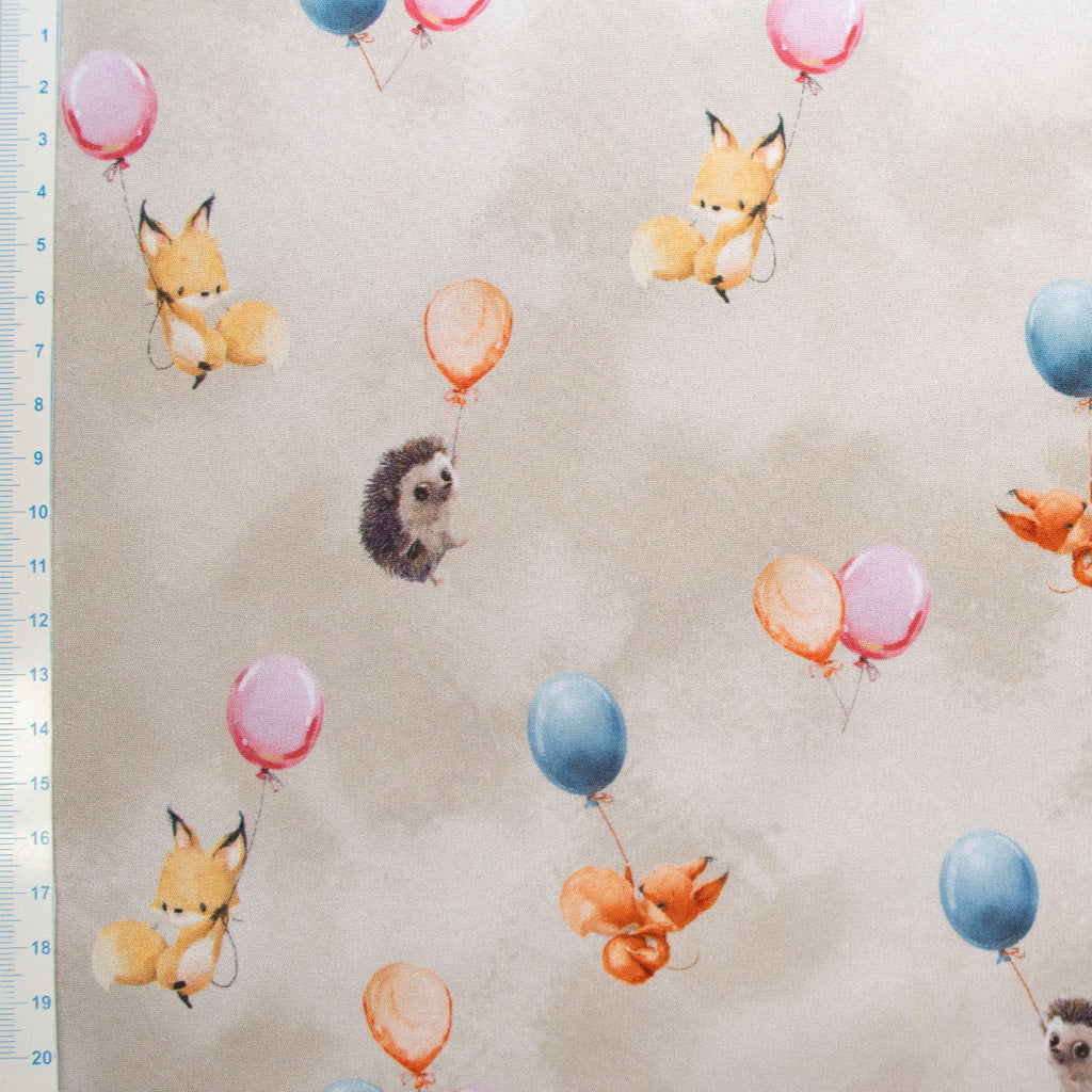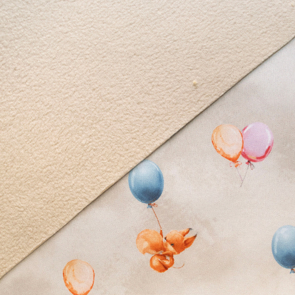 Dieser charmante Softshell-Jackenstoff besticht durch sein verspieltes Digitaldruck-Design mit niedlichen Ballontieren auf warmem Beige. Das hochwertige Material bietet optimale Bewegungsfreiheit und Wetterschutz – perfekt für Kinderjacken, die Abenteuer aushalten. Die feinen Details der Ballonmotive verleihen jedem Projekt eine verspielte Note, die kleine Träumer begeistert. Ideal für Näher, die einzigartige und fröhliche Kleidungsstücke kreieren möchten.