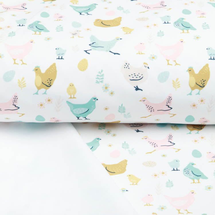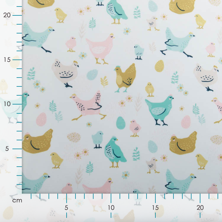 Dieser verspielte Softshell-Jackenstoff bringt Farbe und Humor in deine Garderobe! Das Design mit dem verrückten Hühnerhaufen auf weißem Grund ist ein echter Blickfang – perfekt für alle, die es lustig und lebendig mögen. Der robuste Softshell-Stoff bietet Bewegungsfreiheit und Wetterschutz, ideal für Jacken, die genauso einzigartig sind wie du. Ob für Kinder oder Erwachsene, die ihre Kleidung mit einem Augenzwinkern gestalten möchten – dieser Stoff macht's möglich!