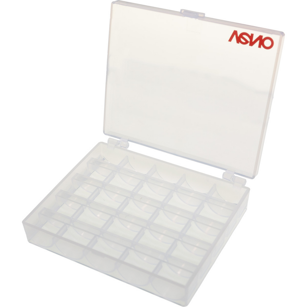 Diese Spulenbox bringt Ordnung ins Nähchaos! Platz für 25 Spulen bietet sie genug Raum, damit deine bunten Garnrollen immer griffbereit und schön sortiert sind. Robust und praktisch – so wird Nähen zum Vergnügen!