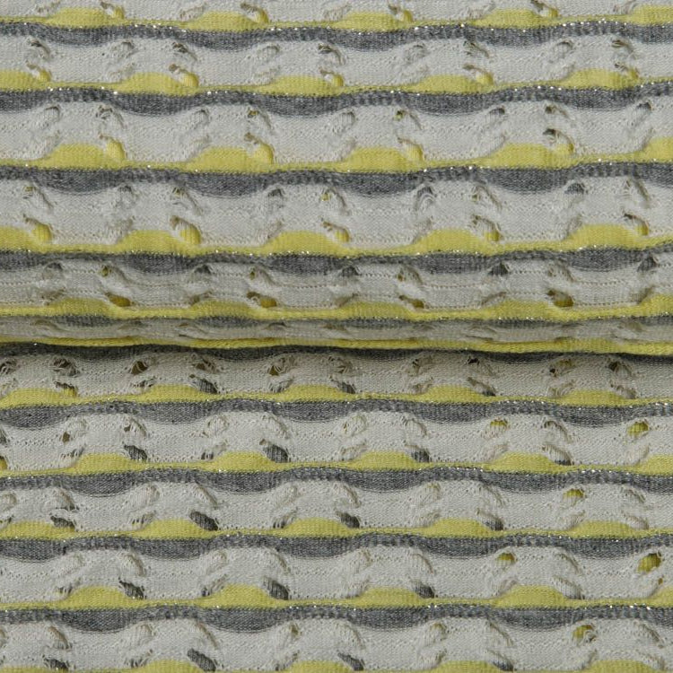 Eleganter Strickjersey mit feinen Glitzereffekten und aufwendiger Lochstickerei-Embroidery, die durch aufgenähte Biesen zusätzliche Struktur und Tiefenwirkung erhält. Das hochwertige Material bietet optimale Trageigenschaften für anspruchsvolle Konfektionen. Die Kombination aus glänzenden Details und handwerklicher Stickerei schafft ein raffiniertes Design mit modernem Appeal. Ideal für elegante Blusen, Kleider und Accessoires, die Qualität und visuelles Interesse vereinen.
