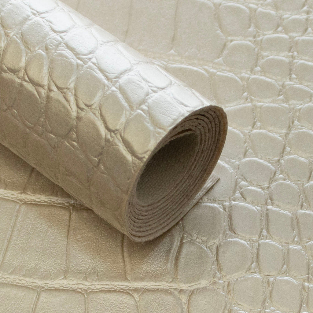 Dieser schimmernde Kunstleder-Coupon besticht mit einer raffinierten Krokodilstruktur in warmem Champagner-Ton. Das Material eignet sich perfekt für kreative Nähprojekte, Accessoires oder Upcycling-Ideen – ob Taschen, Geldbörsen oder Statement-Pieces. Die strukturierte Oberfläche verleiht jedem Projekt sofort einen Hauch von Luxus und Eleganz. Ideal für alle, die ihren Kreationen das gewisse Etwas geben möchten, ohne dabei in die tiefsten Taschen greifen zu müssen!