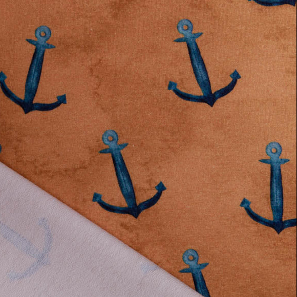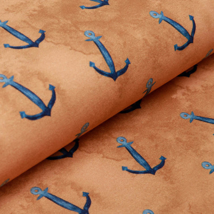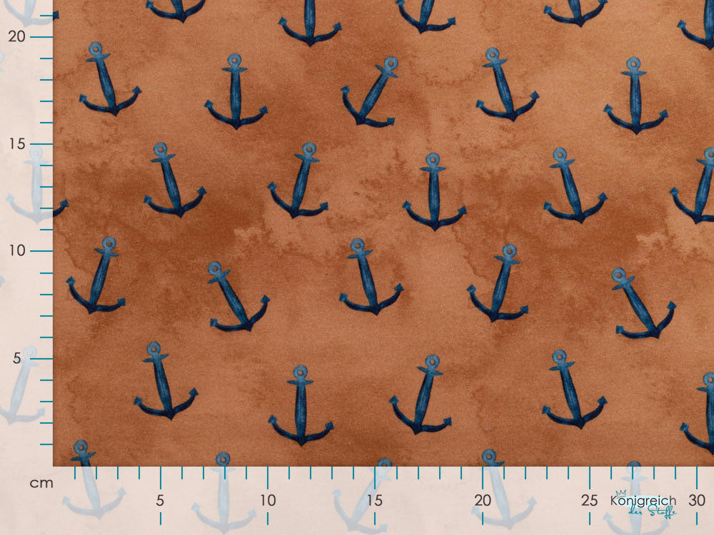Dieser French Terry Sweatstoff besticht durch sein verspieltes Anker-Muster im warmen Ocker-Ton – perfekt für maritime Liebhaber und kreative Nähprojekte. Der weiche, atmungsaktive Digitaldruck von Poppy sorgt für hohen Tragekomfort und lebendige Farbbrillanz. Ideal für Hoodies, Pullis und gemütliche Loungewear, die Charakter haben. Der robuste French Terry hält vielen Wäschen stand und wird mit jeder Wäsche noch kuscheliger.