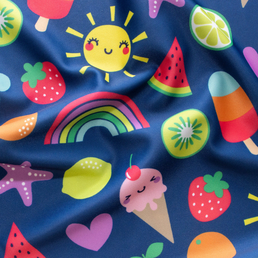 Erfrischend süß wie Eis am Stiel – dieser Badestoff bringt Sommer in jeden Badetag! Der hochwertige Jersey mit UPF 50 Sonnenschutz bewahrt deine Haut zuverlässig vor schädlichen UV-Strahlen, während das verspielte Eis-am-Stiel-Muster in leuchtendem Blau für gute Laune sorgt. Der elastische, samtweiche Stoff sitzt herrlich bequem, trocknet im Nu und hält jedem Wasserspaß stand. Ideal für farbenfrohe Badeanzüge, Bikinis oder Badeshirts – dieser vielseitige Stoff verbindet süßes Design mit praktischem Schutz. Perfekt für alle Wasserratten, die mit Stil und Sicherheit ins kühle Nass springen möchten!