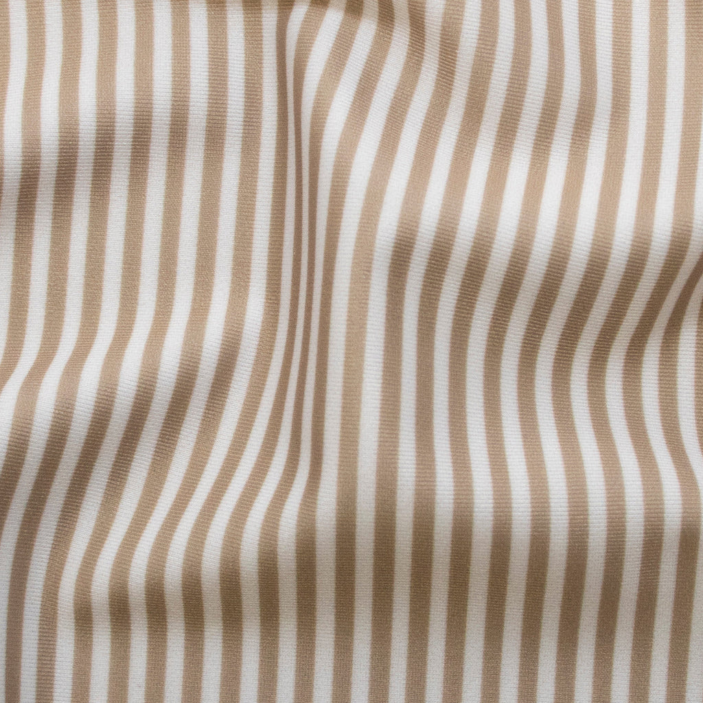 Klassische Streifen in warmem Beige und Weiß – dieser Badestoff ist zeitlos elegant! Der hochwertige Jersey mit UPF 50 Sonnenschutz schützt deine Haut zuverlässig vor intensiver UV-Strahlung, während das nautische Streifenmuster für Vintage-Charme sorgt. Der elastische, samtweiche Stoff sitzt bequem, trocknet schnell und hält jedem Wasserspaß stand. Ideal für stilvolle Badeanzüge, Bikinis oder Badeshirts – dieser vielseitige Stoff verbindet zeitloses Design mit praktischem Schutz. Perfekt für alle, die mit Stil und Sicherheit ins Wasser gehen und dabei klassische Eleganz ausstrahlen möchten!