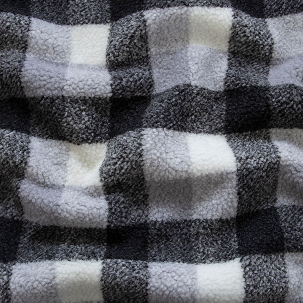 Hochwertiger Teddy in klassischem Karomuster mit Schwarz-, Weiß- und Grautönen. Dieser vielseitige Stoff besticht durch seine weiche, kuschelige Oberfläche und eignet sich hervorragend für Bekleidung, Heimtextilien und Accessoires. Das zeitlose Karomuster bietet elegante Gestaltungsmöglichkeiten und lässt sich problemlos mit anderen Materialien kombinieren. Ideal für Näh- und Designprojekte, die Wärmeisolation und Komfort erfordern.