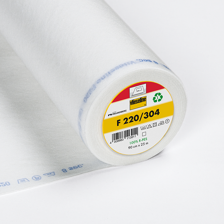 - Die Vlieseinlage wird, wie alle Einlagen von Vlieseline, immer in Längsrichtung zugeschnitten und folgt dabei dem Fadenlauf des Stoffes.
