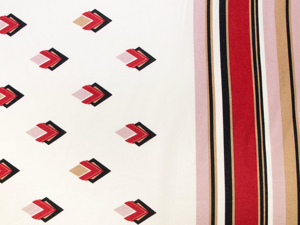 Elegante Viskose-Köper mit geometrischer Bordüre in warmem Creme – ein Stoff, der Eleganz und Spaß vereint! Die feine Köperstruktur verleiht deinen Projekten Stabilität und Bewegung zugleich, während das geometrische Muster mit Bordüre für einen modernen, raffinierten Look sorgt. Perfekt für schwingende Röcke, strukturierte Blusen oder Statement-Accessoires. Die geschmeidige Viskose schmeichelt der Haut und macht jedes Nähprojekt zu einem kleinen Kunstwerk – Nähen mit Stil!