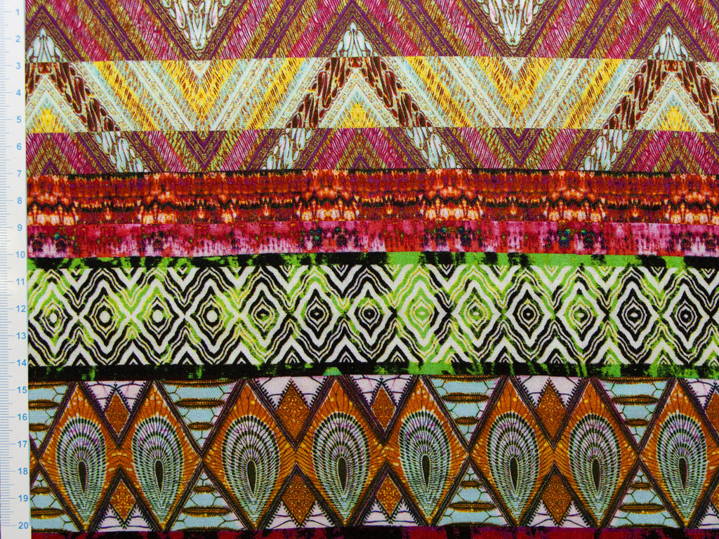 Kulturelle Vielfalt im Fadenlauf – dieser Webware Baumwolle Bordürenstoff im Ethnostyle bringt Farbenfreude und handwerklichen Charme in deine Nähbox. Mit seinen bunten, ethnischen Mustern und der hochwertigen Baumwollqualität ist er ein echtes Multitalent: perfekt für Kissenbezüge, Taschen oder als farbenfroher Akzent in Patchwork-Projekten. Der Digitaldruck sorgt für gestochen scharfe Details, die deine Kreationen zum Strahlen bringen – Nähen war nie so bunt!