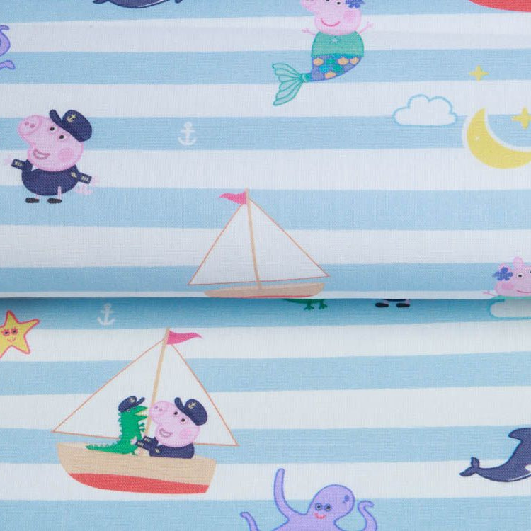 Ahoi! Peppa Pig segelt in dieser charmanten Webware aus Baumwolle Popeline direkt in dein Nähzimmer. Der lebendige Digitaldruck zeigt Peppa auf hoher See vor strahlendem weißem Hintergrund – perfekt für maritime Kinderträume. Die robuste Baumwollqualität macht diesen Stoff ideal für Kleider, Accessoires und Dekoprojekte, die kleine Seefahrer begeistern. Mit diesem fröhlichen Design wird jedes Nähprojekt zum Abenteuer!