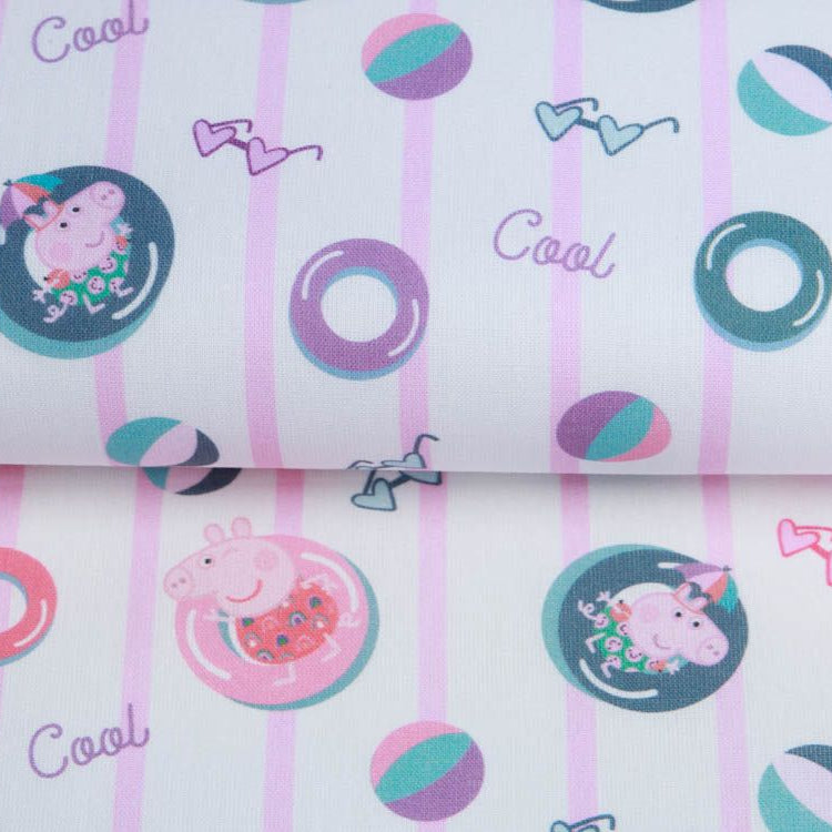 Tauche ein in die bunte Welt von Peppa Pig mit diesem fröhlichen Kinderstoff! Das hochwertige Baumwoll-Popeline besticht durch seinen lebendigen Digitaldruck, der Peppa und ihre Freunde beim Badespaß zeigt. Der weiße Untergrund lässt die Motive strahlend wirken und bietet die perfekte Grundlage für kreative Nähprojekte. Ob für Kinderkleider, Bettwäsche oder Accessoires – dieser Stoff bringt Spielfreude ins Kinderzimmer und begeistert kleine Peppa-Fans garantiert!