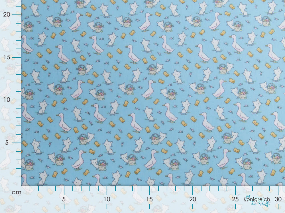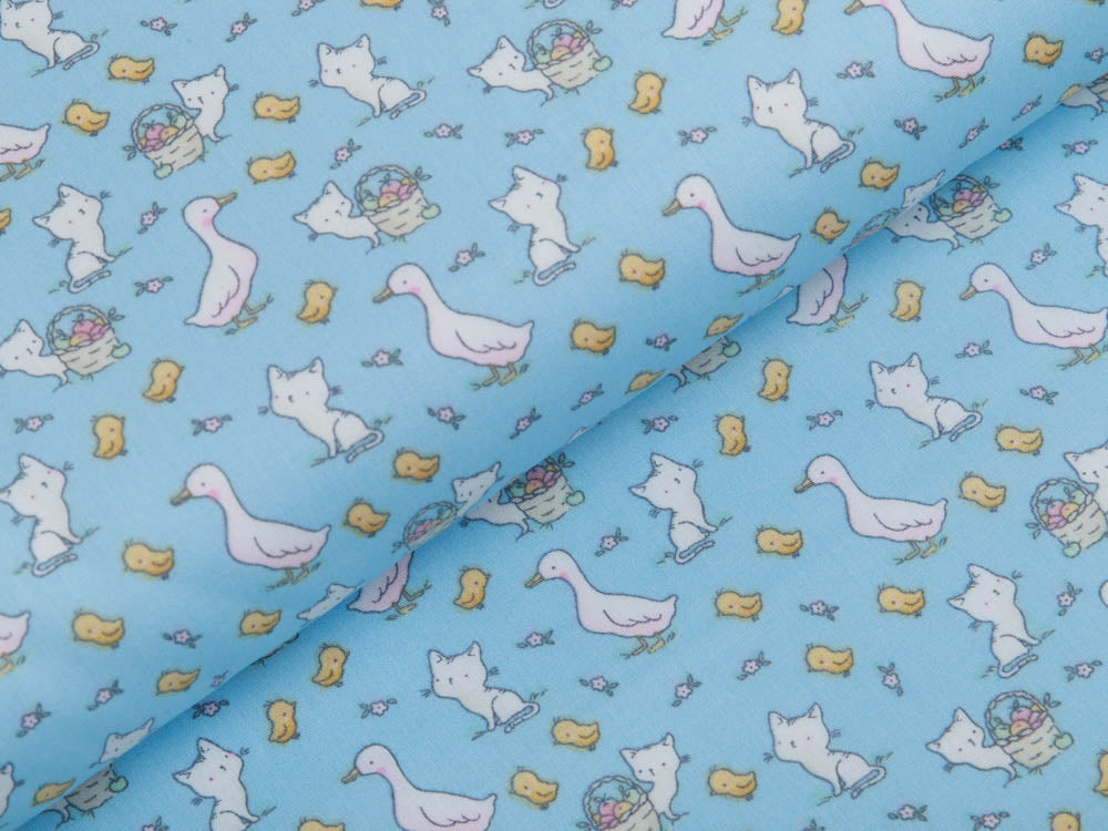 Verspielter Kinderstoff aus hochwertiger Baumwolle-Popeline mit charmanten Gänse- und Katzenmotiven. Das feingewebte Material bietet optimale Stabilität für Kinderkleidung, Bettwäsche und Dekoaccessoires. Die Popeline-Bindung sorgt für angenehme Trageeigenschaften und Langlebigkeit auch nach häufigem Waschen. Ideal für Näherinnen, die robuste, farbenfrohe Stoffe für Kinderprojekte suchen. Pflegeleicht und hautfreundlich – perfekt für kleine Abenteurer.