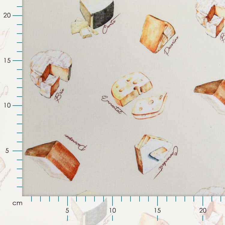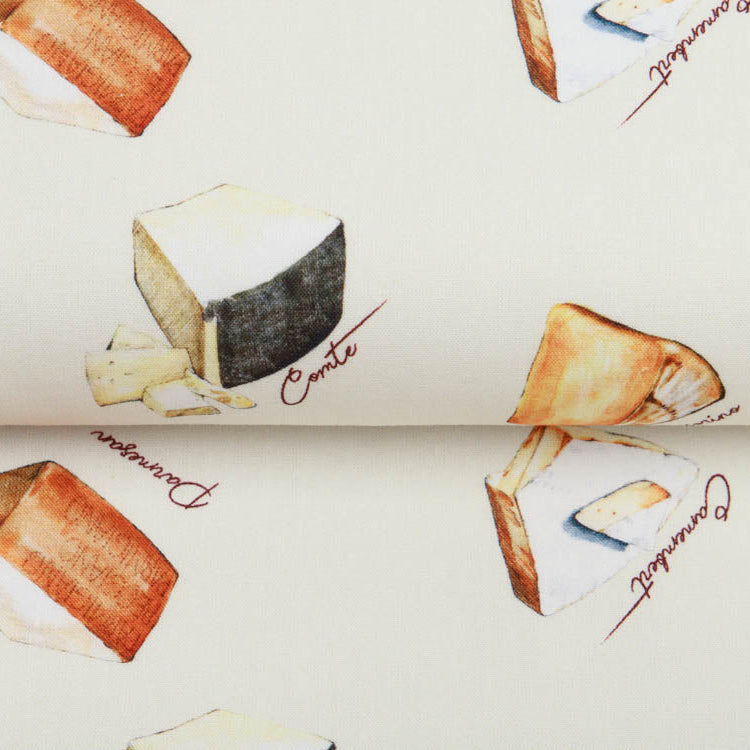 Käse-Liebhaber aufgepasst! Dieser charmante Baumwollstoff besticht mit einem verspielten Muster verschiedenster Käsesorten auf naturfarbenem Grund. Die hochwertige Popeline-Webware überzeugt durch ihre angenehme Griffigkeit und Strapazierfähigkeit – perfekt für Patchwork, Kissenbezüge oder kreative Nähprojekte. Mit diesem köstlichen Design bringst du Humor und Charme in deine Werkstatt!