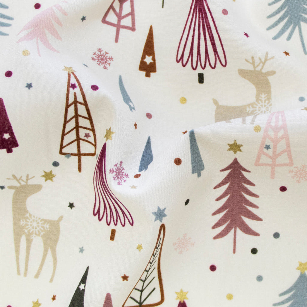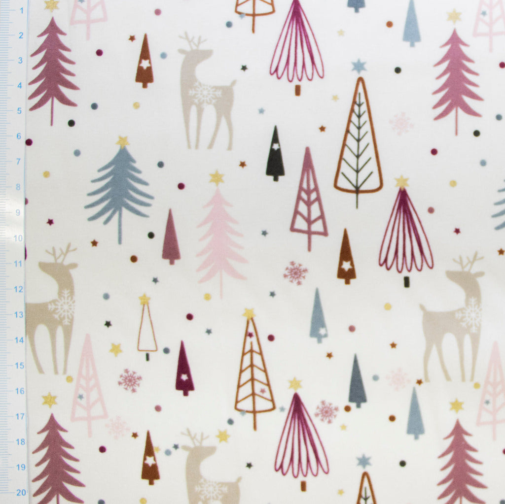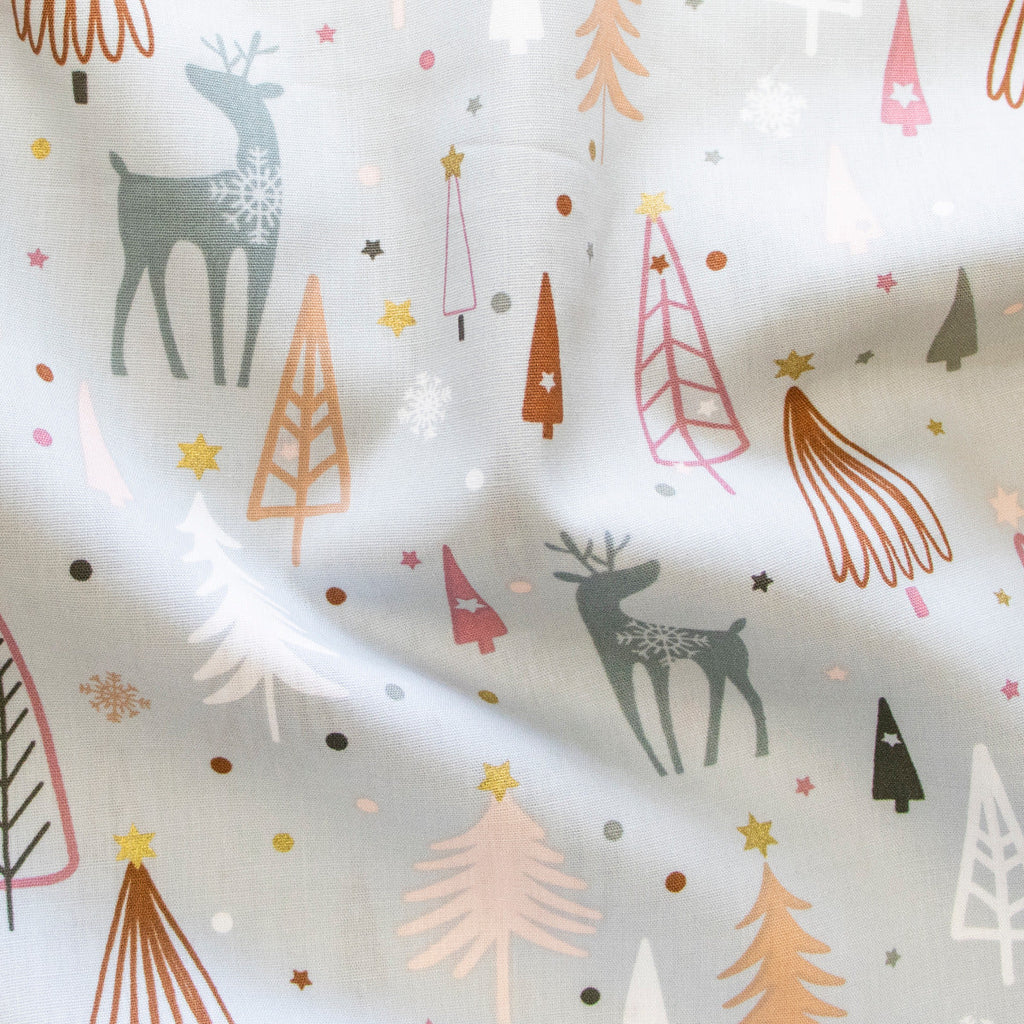 Festliche Baumwollwebware mit charmanten Tannenbäumen im glänzenden Foliendruck – perfekt für weihnachtliche Nähprojekte! Diese hochwertige Popeline besticht durch ihre feine Struktur und den hochwertigen Druck, der auch nach mehreren Wäschen seine Brillanz behält. Ideal für Kissenbezüge, Tischdecken, Adventskalender oder festliche Kleidungsstücke. Die angenehme Baumwollqualität liegt wunderbar in der Hand und lässt sich leicht verarbeiten. Bringen Sie weihnachtliche Freude in Ihre Nähstube!
