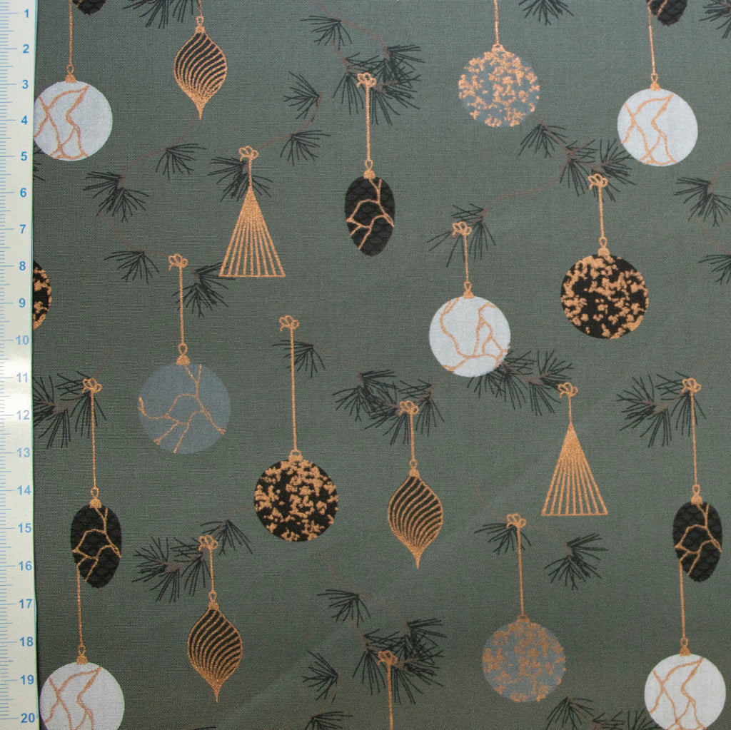 Festliche Baumwoll-Popeline mit glänzendem Foliendruck – bunte Weihnachtskugeln tanzen über den Stoff und bringen sofort Weihnachtsstimmung in dein Nähprojekt! Das hochwertige Webware-Material liegt angenehm in der Hand und eignet sich perfekt für Kissenbezüge, Tischläufer, Adventskalender oder weihnachtliche Accessoires. Mit seinem verspielten Kugel-Design wird jedes Projekt zum Hingucker unter dem Weihnachtsbaum.