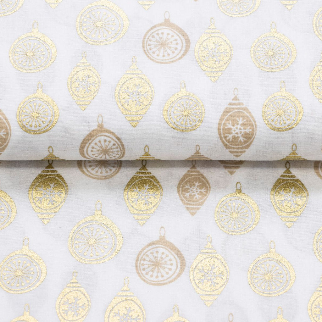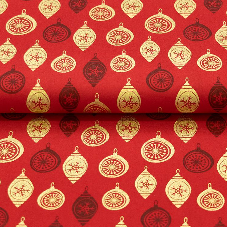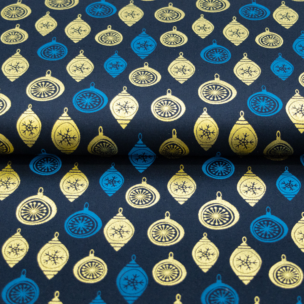 Festliche Baumwolle trifft glänzenden Glanz! Diese hochwertige Popeline besticht mit verspieltem Weihnachtskugel-Design im funkelnden Foliendruck auf marineblauem Grund. Das feine Webmuster sorgt für angenehme Tragequalität und Langlebigkeit. Perfekt für weihnachtliche Nähprojekte, Dekokissen oder festliche Kleidungsstücke, die garantiert Augen zum Leuchten bringen. Ein Stoff, der die Vorfreude auf die Feiertage weckt!