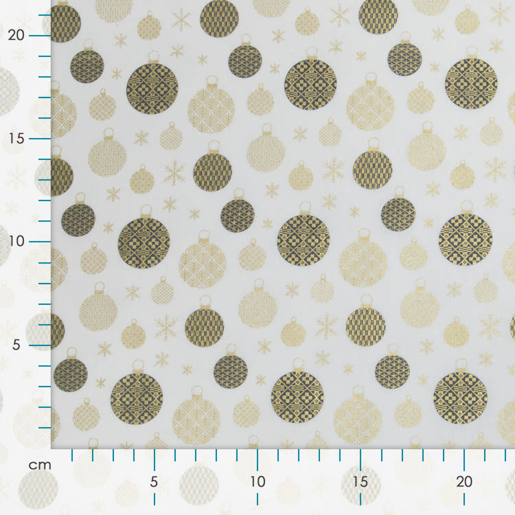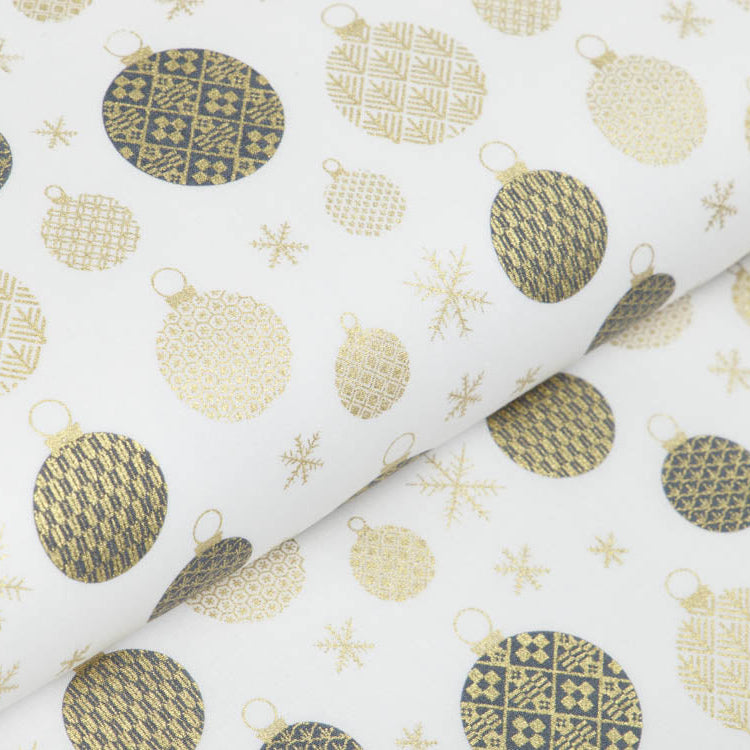 Festliche Weihnachtskugeln tanzen über diese charmante Baumwoll-Popeline – perfekt für alle, die ihren Projekten einen verspielten Hauch von Weihnachtszauber verleihen möchten. Der hochwertige Foliendruck in glänzender Optik sorgt für ein edles Finish, während die robuste Webware-Qualität Langlebigkeit garantiert. Das warme Wollweiß bildet die ideale Grundlage für die bunten Kugelmotive und lässt sich wunderbar mit anderen Stoffen kombinieren. Ob für Weihnachtsdeko, Kissenbezüge oder festliche Accessoires – dieser Stoff bringt Freude in jedes Nähprojekt und macht die Vorweihnachtszeit noch schöner.