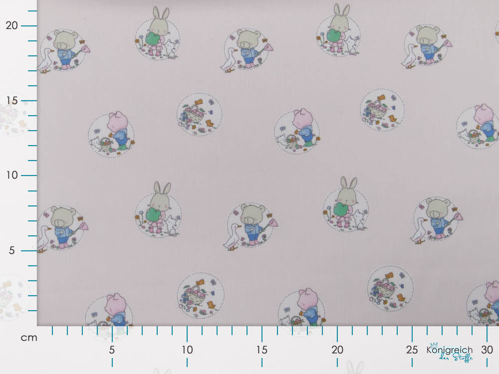 Feingewebte Baumwoll-Popeline mit entzückenden Tierkinder-Motiven in floralem Rahmen – ein vielseitiger Klassiker für anspruchsvolle Nähprojekte. Das dicht gewebte Material garantiert Formbeständigkeit und einfache Verarbeitung an Nähmaschine und von Hand. Die ausgewogene Farbpalette eignet sich hervorragend für Kindermode, Kissenbezüge und dekorative Accessoires. Ein zuverlässiger Stoff für Näherinnen, die Qualität und Design gleichermaßen schätzen.