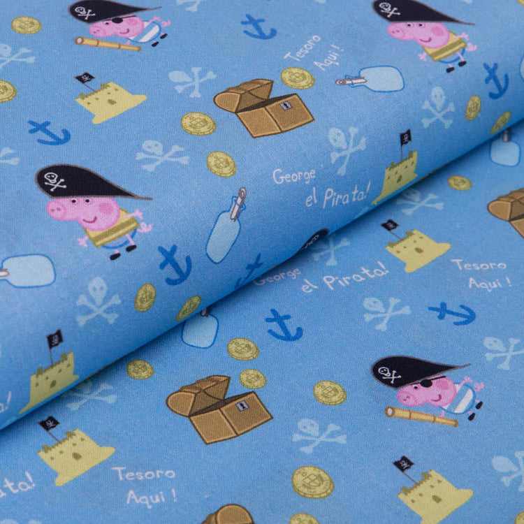Peppa Pig und ihre Freunde begeben sich auf ein spannendes Abenteuer! Dieser fröhliche Baumwoll-Popeline besticht durch liebevolle Schatzsuche-Motive auf strahlendem Blau. Das hochwertige Webware-Material ist perfekt für Kinderprojekte – ob Kleidung, Bettwäsche oder Dekoration. Die robusten Fasern versprechen lange Haltbarkeit und einfache Pflege. Ein Stoff, der kleine Abenteurer zum Träumen einlädt und Näh-Herzen höher schlagen lässt!