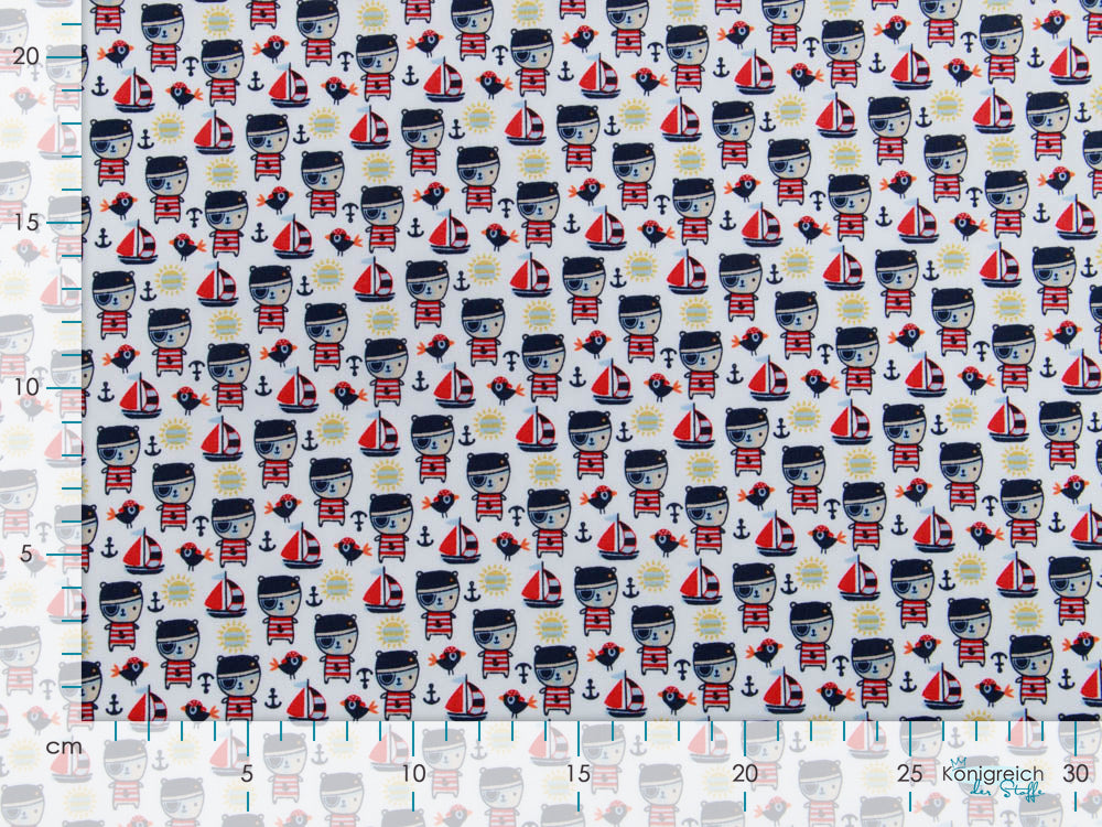 Webware Baumwolle Popeline - Piraten-Bären - wollweiß