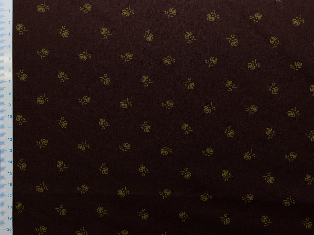 Webware Baumwolle Renforcé mercerisiert für Trachten - kleine Röschen - dunkelbraun