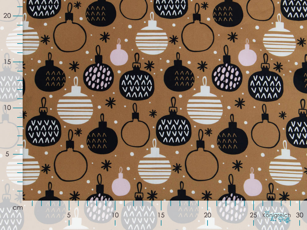 Webware Baumwolle Swafing Noel – Gemusterte Weihnachtskugeln Hochwertige Baumwoll-Webware von Swafing mit festlichem Weihnachtskugel-Muster. Der feine Stoff besticht durch seine detailreiche Dessinierung und eignet sich hervorragend für Weihnachtsdekoration, Patchwork-Projekte und festliche Näharbeiten. Die robuste Baumwollqualität garantiert Langlebigkeit und einfache Verarbeitung. Mit seinem klassischen Weihnachtsmotiv bringt dieser Stoff wärmende Festlichkeit in jedes Projekt – ideal für Kissenbezüge, Tischläufer, Adventskalender oder Geschenkverpackungen.