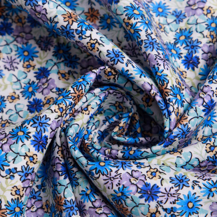 Tauchen Sie ein in ein Blütenmeer! Dieser farbenfrohe Webware Popeline aus 100% Baumwolle besticht durch seinen lebendigen Digitaldruck mit üppigen Blumenmotiven. Die robuste Popeline-Webart macht diesen Stoff perfekt für Kleidungsprojekte, Kissenbezüge oder Dekostoffe – überall dort, wo Sie Farbe und Freude ins Spiel bringen möchten. Mit seiner angenehmen Haptik und hochwertigen Verarbeitung ist dieser Stoff ein Traum für kreative Näherinnen und Näher. Lassen Sie Ihrer Fantasie freien Lauf!