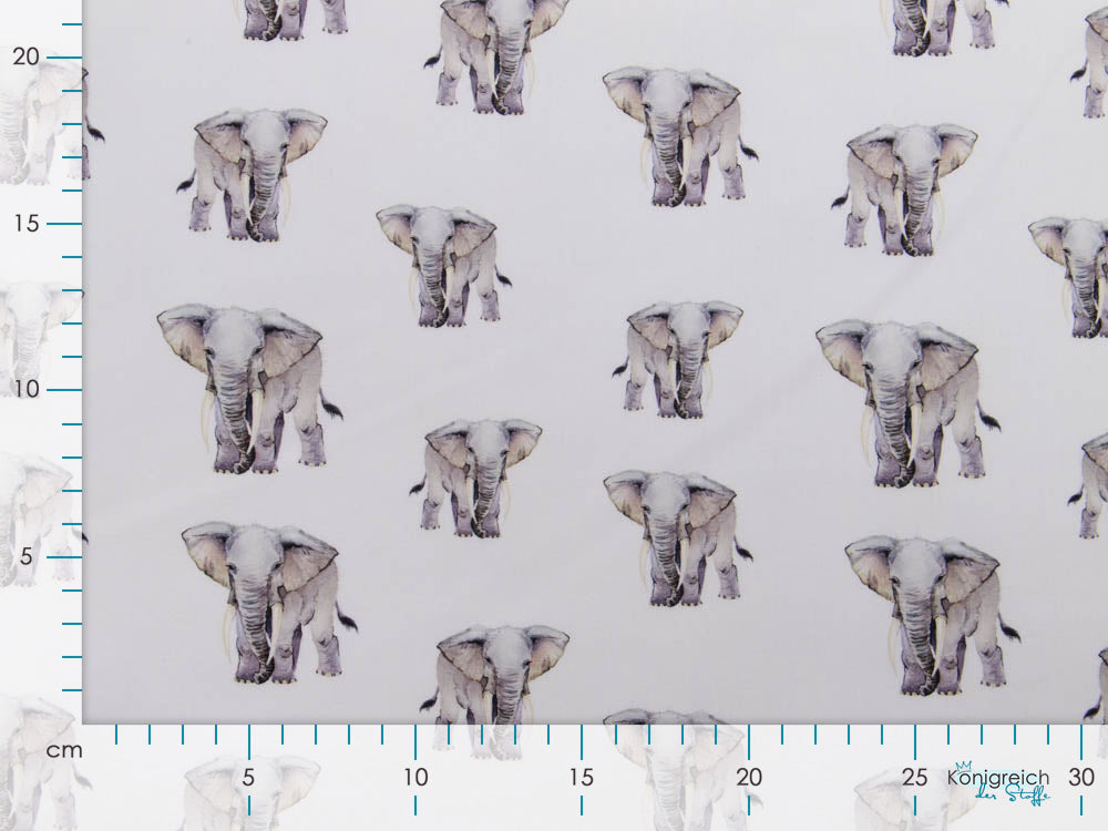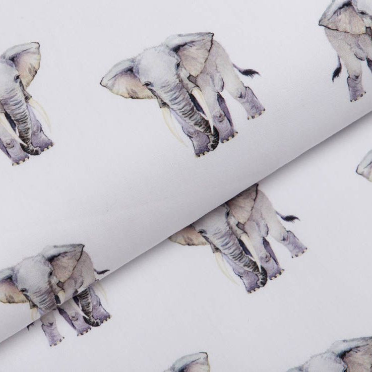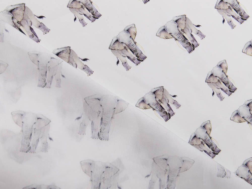 Webware Popeline Baumwolle Digitaldruck - Elefanten - weiß