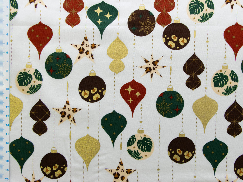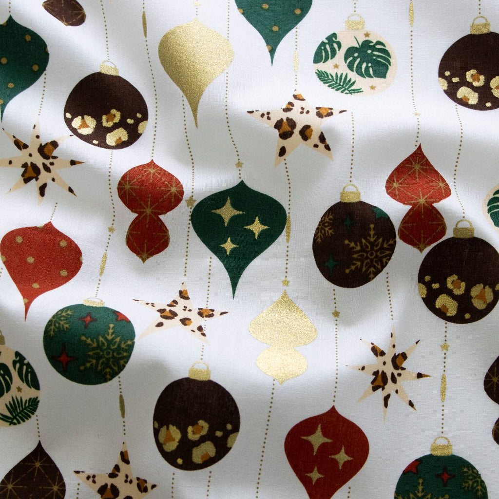 Feingewebte Baumwoll-Popeline mit kunstvoll gestalteten Christbaumkugeln im ansprechenden Mustermix. Das robuste Gewebe zeichnet sich durch gleichmäßige Fadendichte und hohe Reißfestigkeit aus, was präzise Verarbeitung ermöglicht. Der Foliendruck haftet dauerhaft und behält seine Farbintensität über längere Zeit. Dieses Material eignet sich hervorragend für Weihnachtsdekoration, Patchwork-Projekte, Polsterbezüge und festliche Accessoires. Die vielfältige Motivgestaltung bietet kreative Gestaltungsmöglichkeiten für anspruchsvolle Textilarbeiten. Ein zuverlässiger Stoff für professionelle und ambitionierte Handarbeiten.