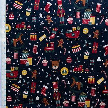 Festliche Webware trifft auf zeitlose Eleganz! Dieser wunderbar weiche Popeline aus 100% Baumwolle besticht durch sein tiefes Dunkelblau und charmante Weihnachtsmotive – perfekt für kreative Nähprojekte. Ob Kissenbezüge, Tischdecken oder selbstgenähte Geschenke: Der hochwertige Stoff überzeugt mit angenehmer Haptik und brillanten Farben. Ideal für alle, die ihre Festtage mit persönlichen, handgemachten Details verschönern möchten. Ein Stoff, der Freude macht – zum Nähen und zum Verschenken!