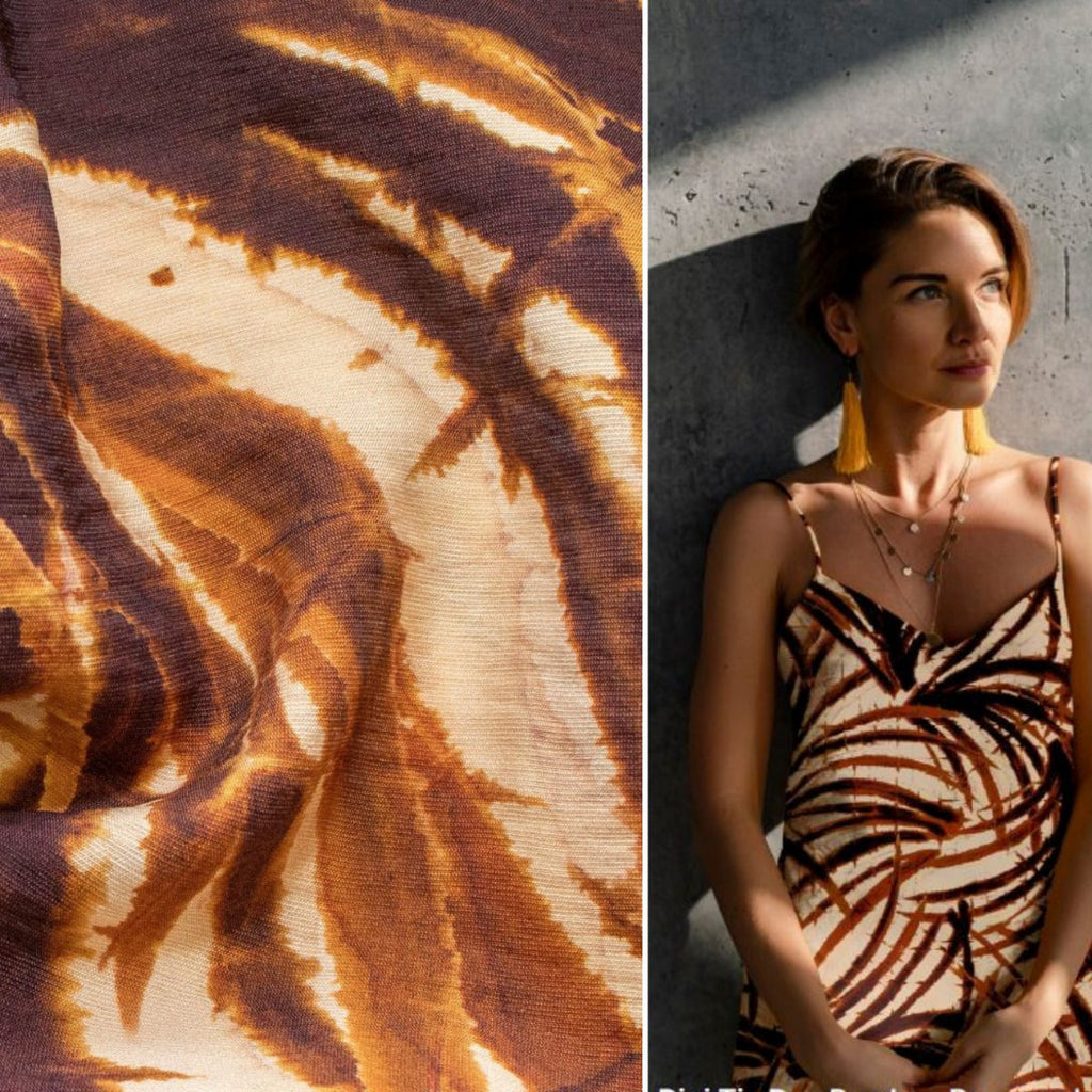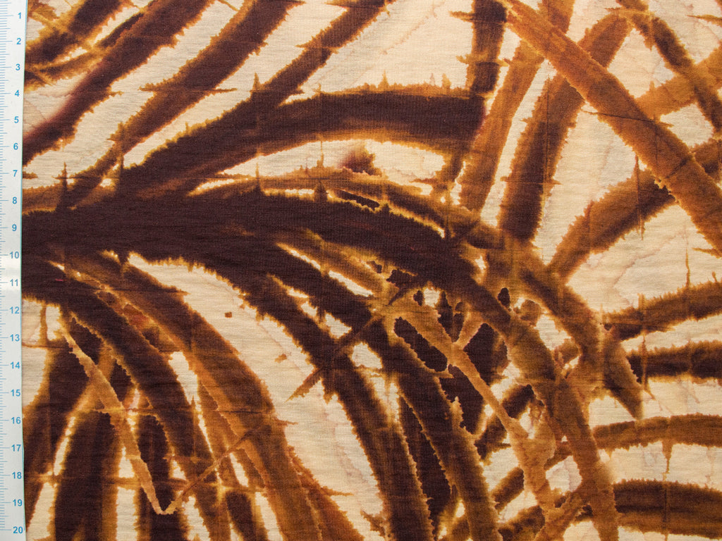 Natürliche Schönheit in jedem Faden! Dieses exotische Muster mit geschwungenen Bambusblättern in warmem Braun bringt fernöstlichen Flair in deine Nähstube. Die fließende Viskose schmiegt sich angenehm an und eignet sich wunderbar für fließende Silhouetten und entspannte Styles. Perfekt für alle, die Natur lieben und ihre Kreationen mit einem Hauch von Zen-Ästhetik versehen möchten. Lass dich von der organischen Eleganz verzaubern!
