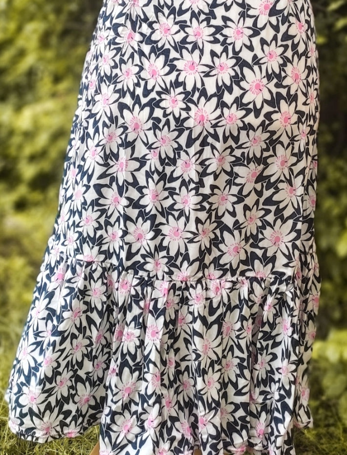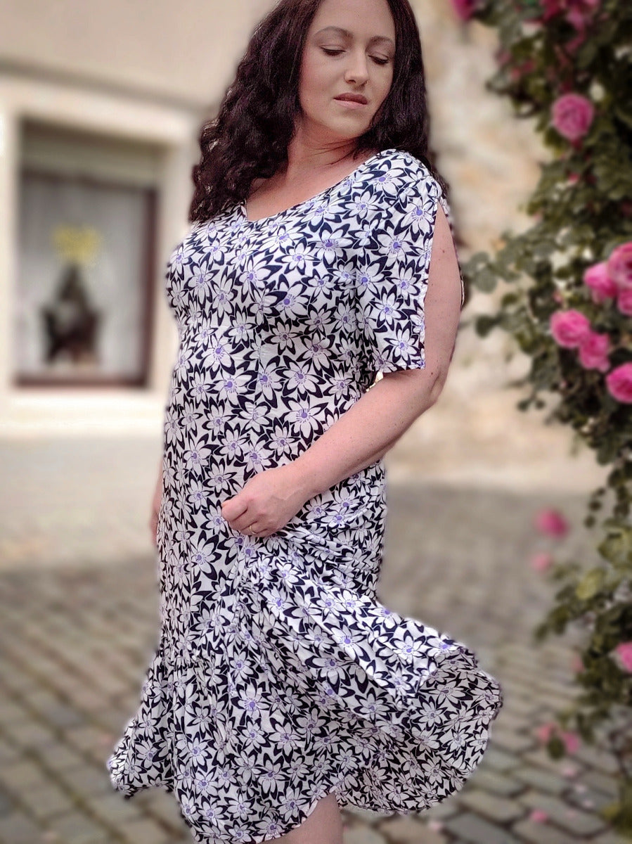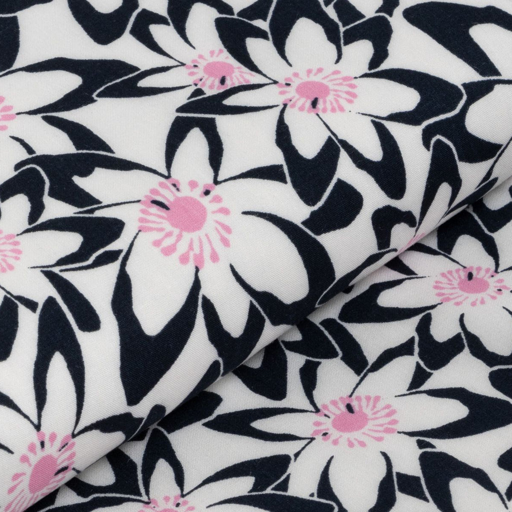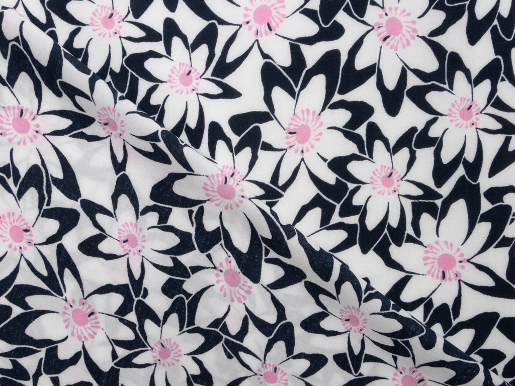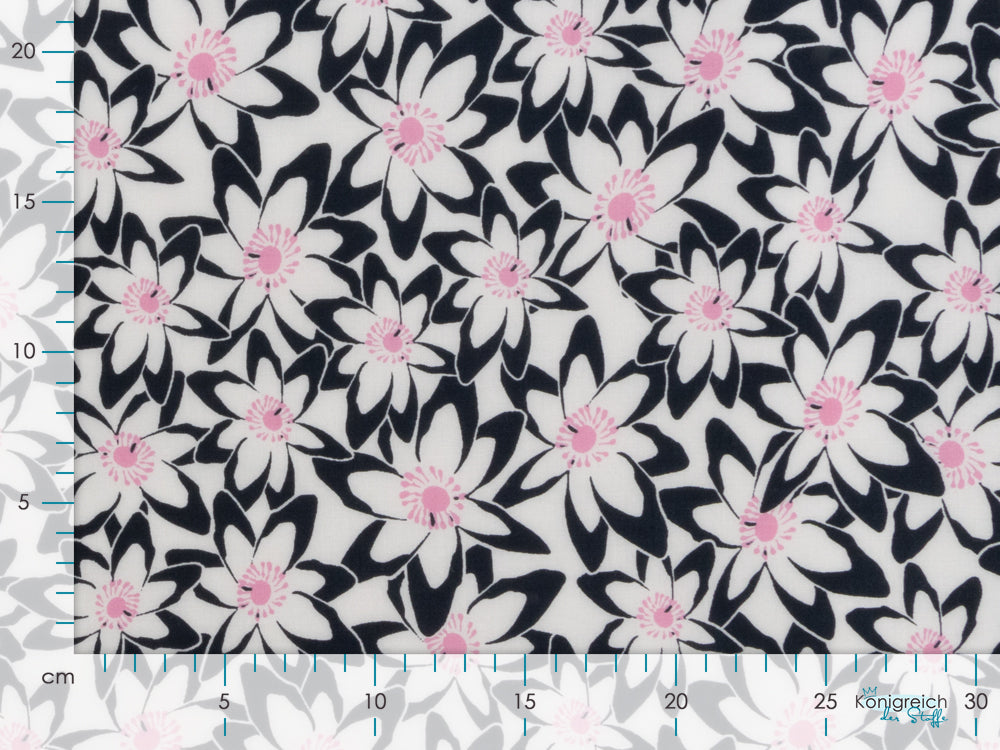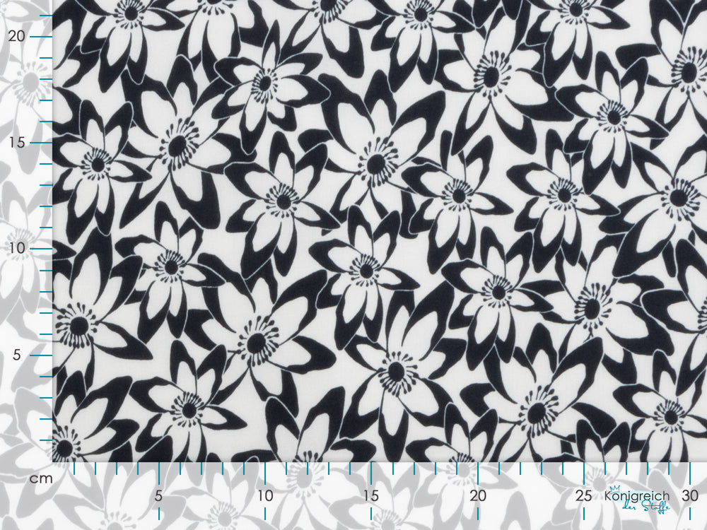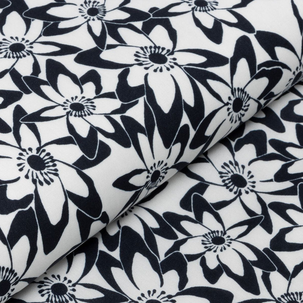 Tauchen Sie ein in eine Blütenpracht, die direkt auf Ihren Stoff kommt! Dieses verspielte Viskose-Webware besticht durch ein charmantes Blumenmuster in klassischem Nachtblau und frischem Weiß. Die fließende Viskose fühlt sich wunderbar weich an und eignet sich perfekt für luftige Sommerkleider, elegante Blusen oder gemütliche Loungewear. Das zeitlose Muster passt zu jedem Stil – ob romantisch, modern oder boho. Ein Stoff, der Ihre Kreativität zum Blühen bringt!