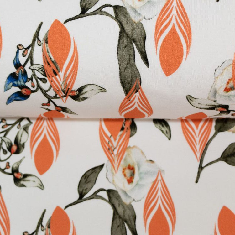 Zarte Federn und verspielte Zweige tanzen über diesen wunderschönen Viskose-Webstoff in zartem Weiß. Das fließende Material schmiegt sich sanft an die Haut und eignet sich perfekt für luftige Blusen, elegante Kleider oder gemütliche Loungewear. Der natürliche Glanz der Viskose verleiht jedem Projekt eine raffinierte Note – ob als Statement-Piece oder subtile Ergänzung deiner Garderobe. Ein Stoff, der Leichtigkeit und Eleganz vereint.