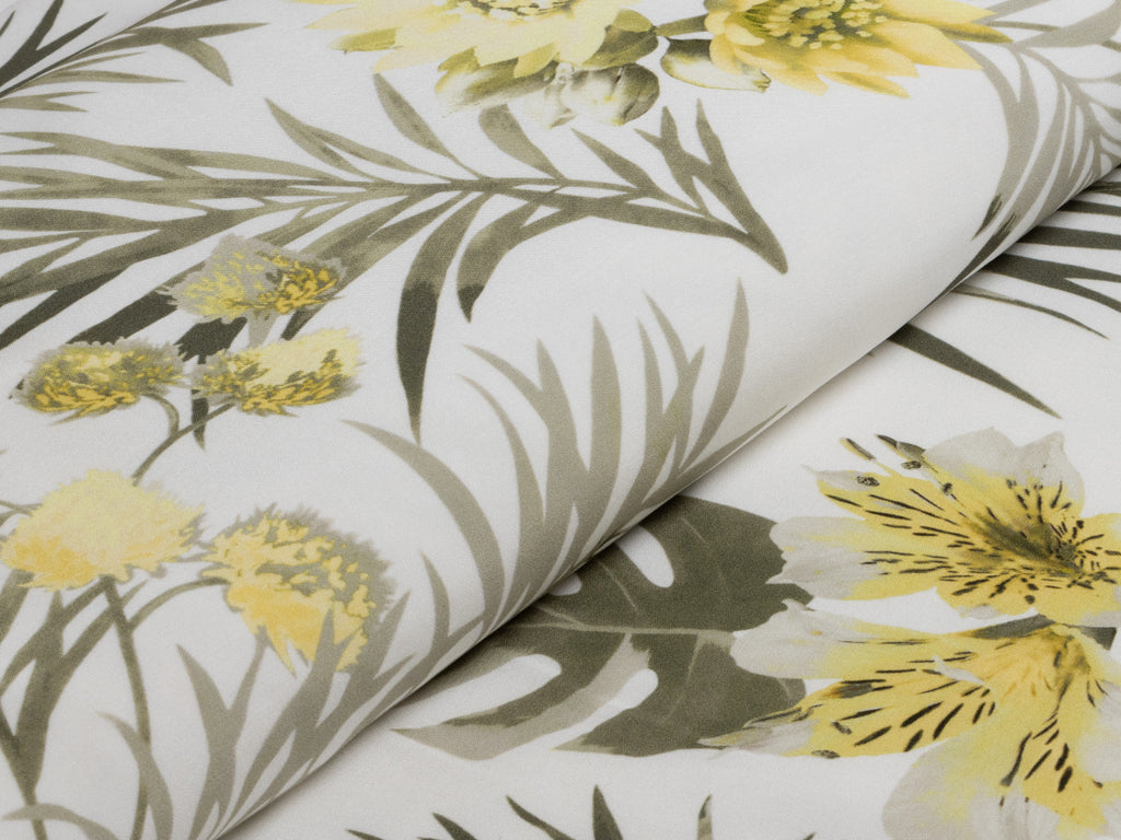Feine Viskose-Webware mit zartem Lilienmotiv auf klassischem Weiß. Das leichte, geschmeidige Material überzeugt durch seinen seidigen Griff und natürliche Glanz – perfekt für Sommerkleider, Blusen und fließende Accessoires. Die Viskose garantiert optimale Atmungsaktivität und Hautfreundlichkeit, während die Webware-Struktur für gleichmäßige Stabilität sorgt. Ein vielseitiger Klassiker für raffinierte Nähprojekte mit zeitlosem Appeal.